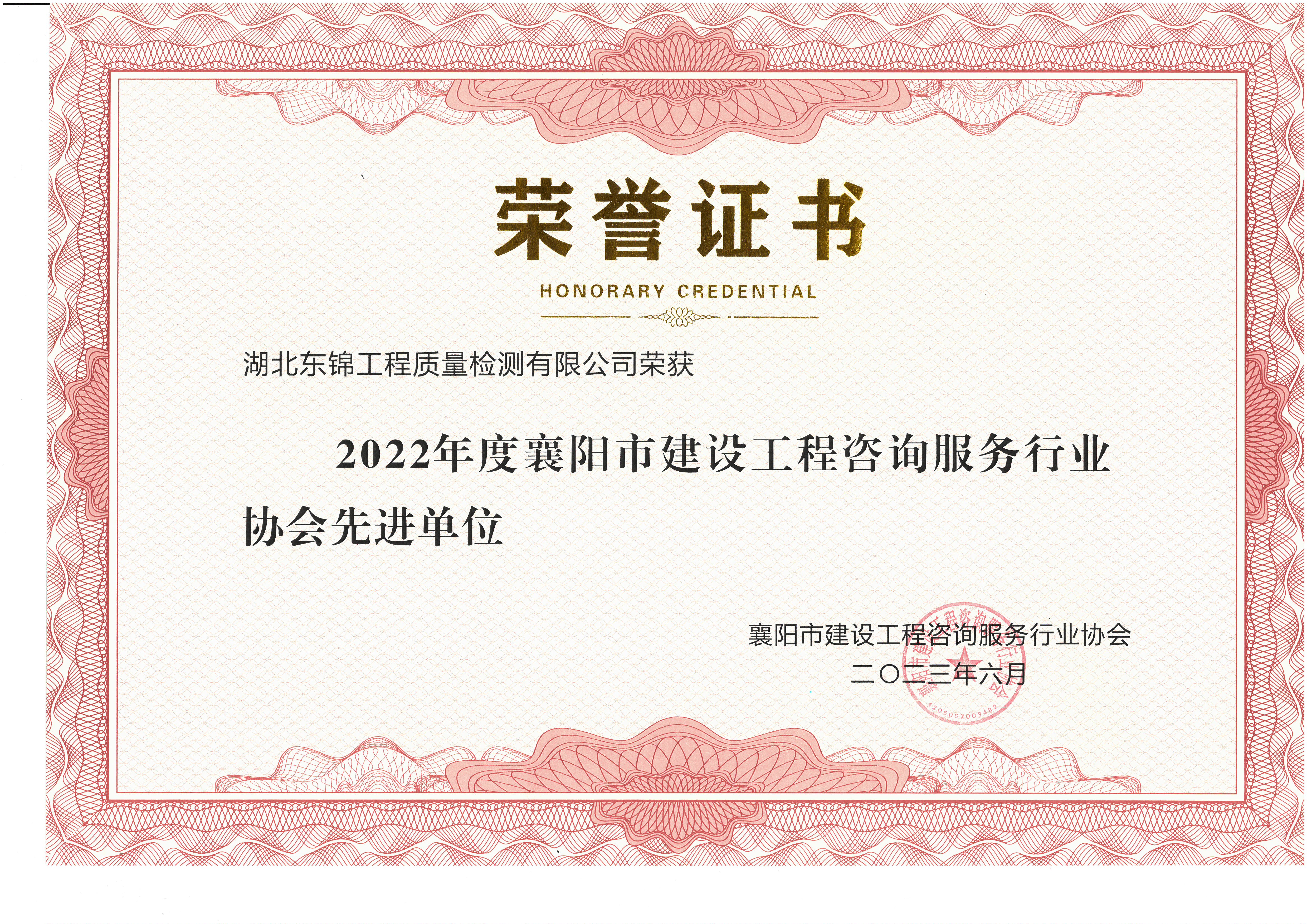 公司榮獲2022年度襄陽市建設工程咨詢服務行業(yè)協(xié)會先進單位稱號