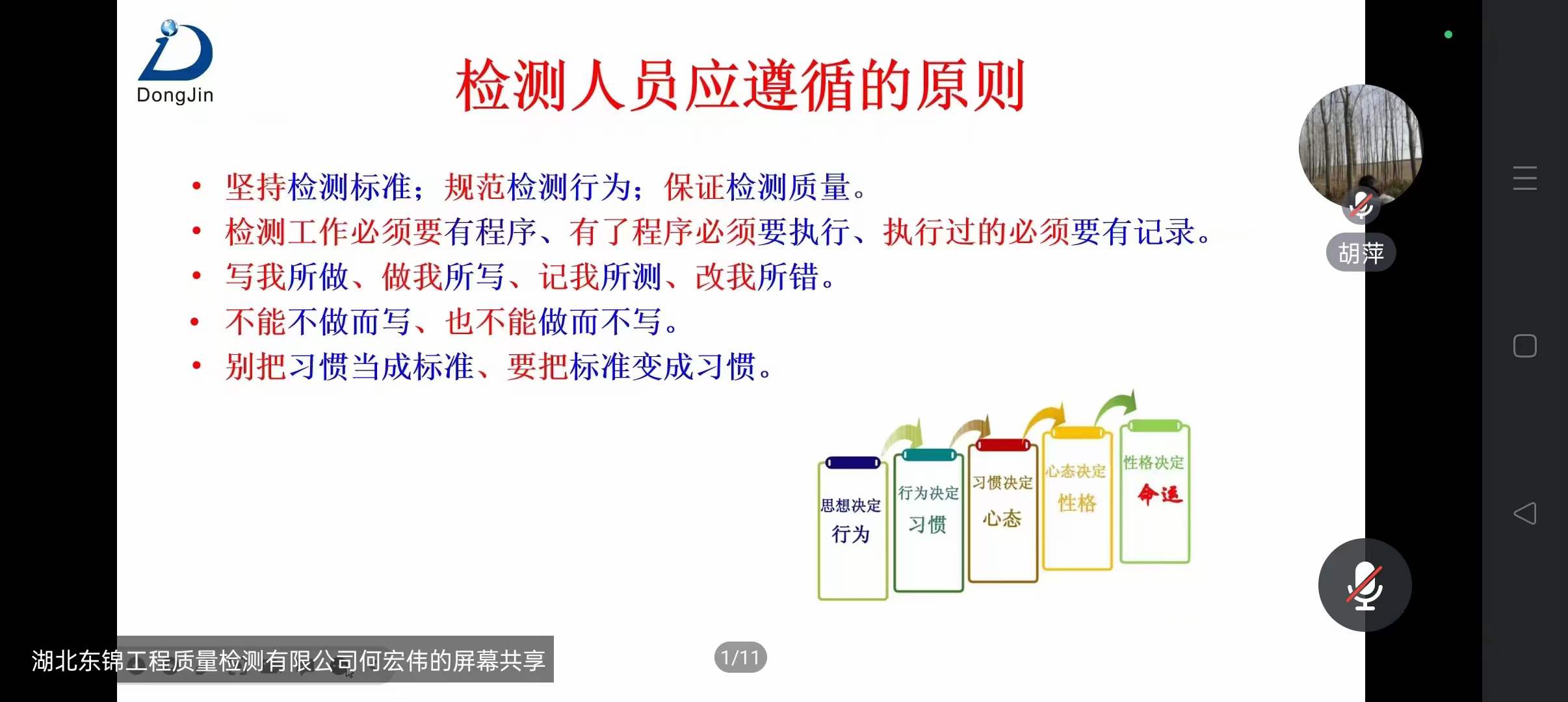 閱讀次數(shù):1046 發(fā)布時間:2023年09月08日2023年9月7日、8日,公司總經(jīng)理何宏偉為全體員工講授《建設(shè)工程質(zhì)量檢驗測機構(gòu)誠信評價標準》。誠信是檢驗檢測機構(gòu)應(yīng)遵循的基本道德規(guī)范,誠信應(yīng)貫穿于檢驗檢測機構(gòu)的所有活動中,誠信是檢驗檢測機構(gòu)的精髓。誠信鑄就品質(zhì);口碑贏得市場!
