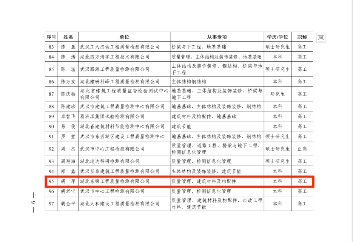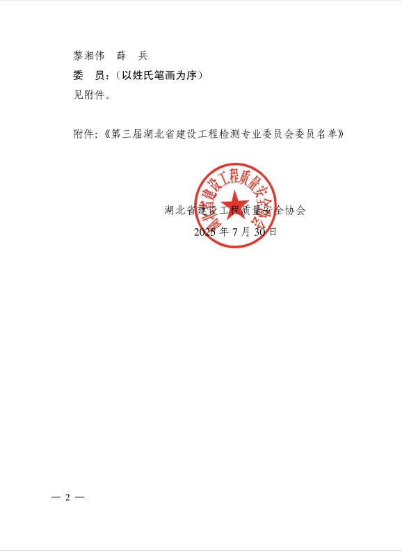 恭喜何總等4人入選第三屆湖北省建設(shè)工程檢測專業(yè)委員會會員