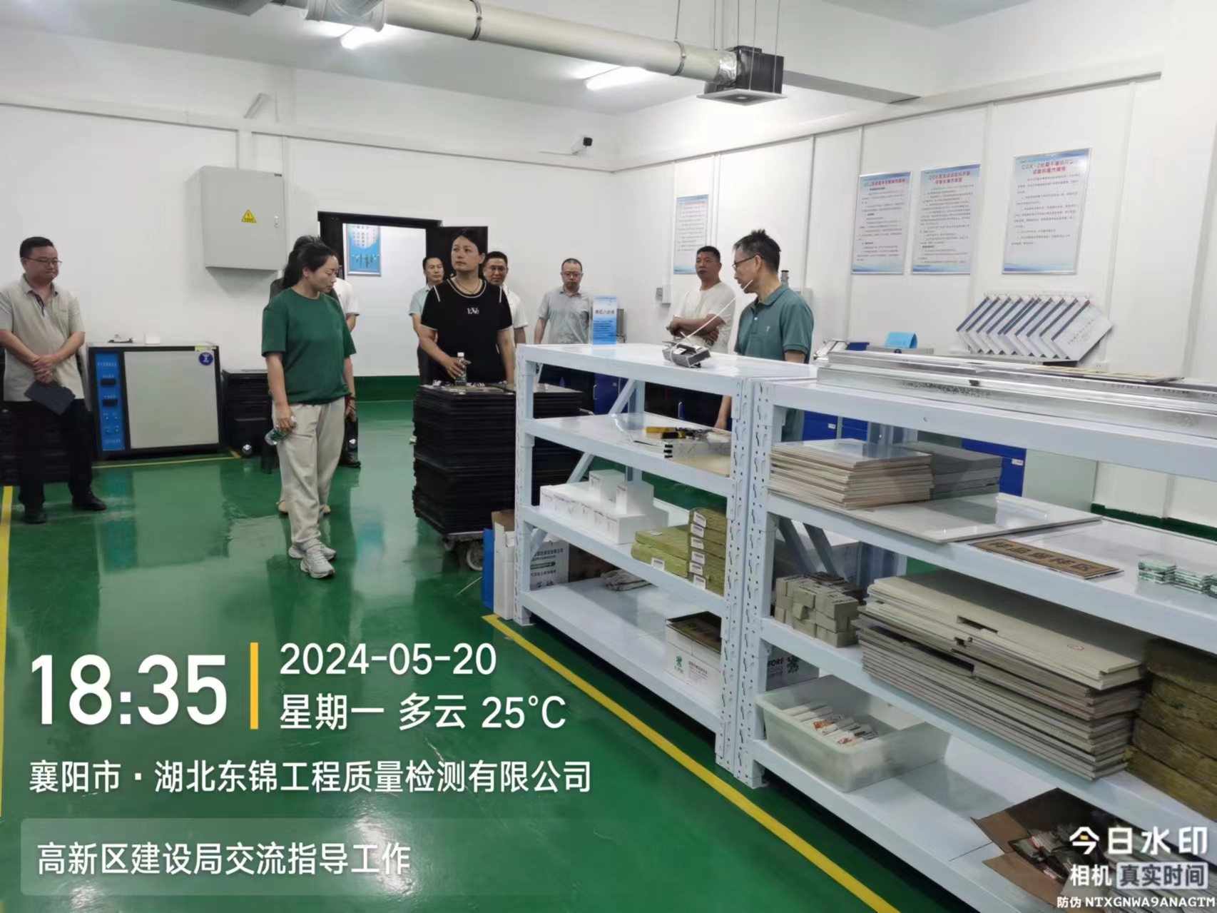 閱讀次數(shù):1308 發(fā)布時間:2024年05月21日2024年5月20日下午,公司屬地襄陽市高新區(qū)城鄉(xiāng)建設局領導一行蒞臨公司考察指導工作。對于東錦檢測公司的服務能力給予充分肯定。公司董事長侯修煉等領導全程陪同,詳細介紹公司各實驗室及所承擔的檢測任務。